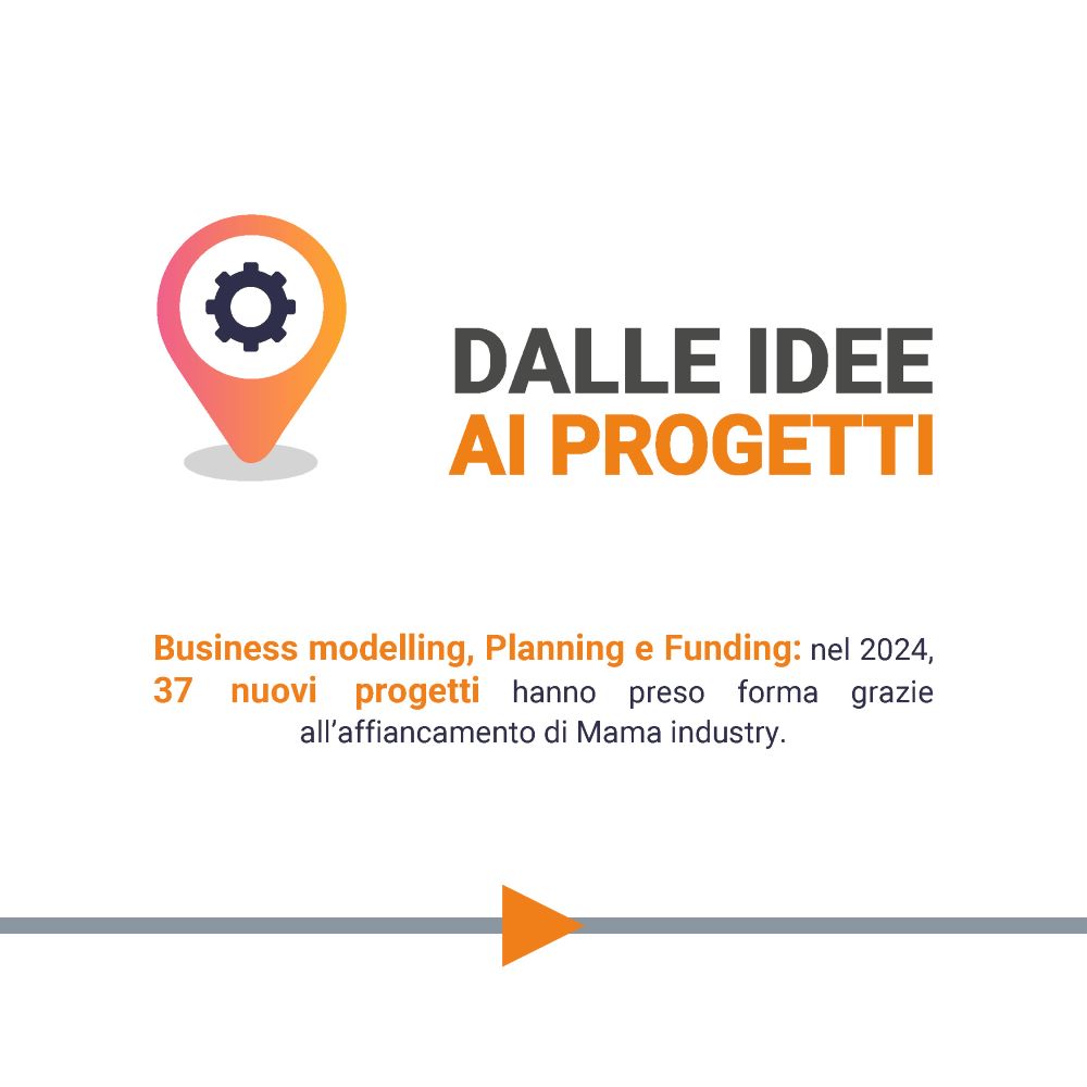 Superato questo primo delicato momento, il viaggio continua con una prima fase di affiancamento più esteso alla quale possono seguire, in base alle specificità e gli obiettivi, le più strutturate attività di business modelling, business planning e business funding. Nel corso del 2024 Mama Industry ha realizzato 37 nuovi progetti per i propri clienti.