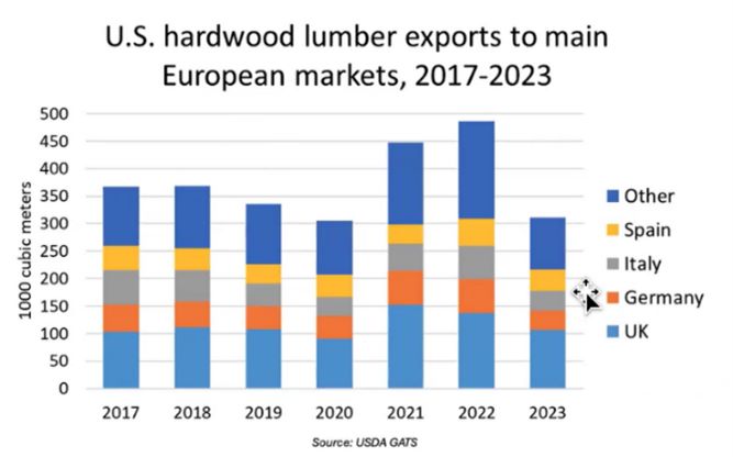 “In questo mercato non ci sono grandi industrie – sottolinea Venables – ma piuttosto molte piccole botteghe di alta qualità, laboratori di alta gamma che producono arredamenti su misura per negozi, ristoranti, edifici pubblici e anche abitazioni private. Anche in Spagna e Italia le piccole botteghe sono consumatori importanti, ma gran parte dei nostri prodotti di legno di latifoglia sono destinati principalmente all’industria, mentre in Germania sono utilizzati principalmente per realizzare elementi ingegnerizzati, finestre e altri manufatti specializzati”.